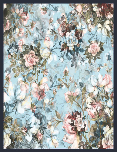 پتو مسافرتی مدل کلاسیک طرح گل آبرنگی زمینه آبی
