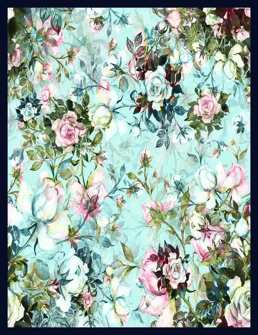 پتو مسافرتی مدل کلاسیک طرح گل آبرنگی زمینه آبی